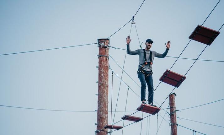 Neomezené lezení v kombinaci s Velkou adrenalinovou houpačkou. Přijďte si k nám užít lezení s neomezeným počtem přelezů a sešup ze 16 metrů. K dispozici Vám bude 12 překážek po celý den a Velká adrenalinová houpačka, kterou můžete využít samostatně, nebo ve dvojici.