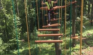Má 27 překážek + 3 lanovky. Nejtěžší trasa našeho lanového parku, na kterém se projdou všechny překážky.