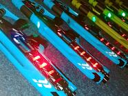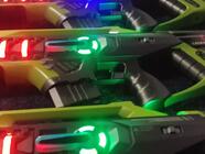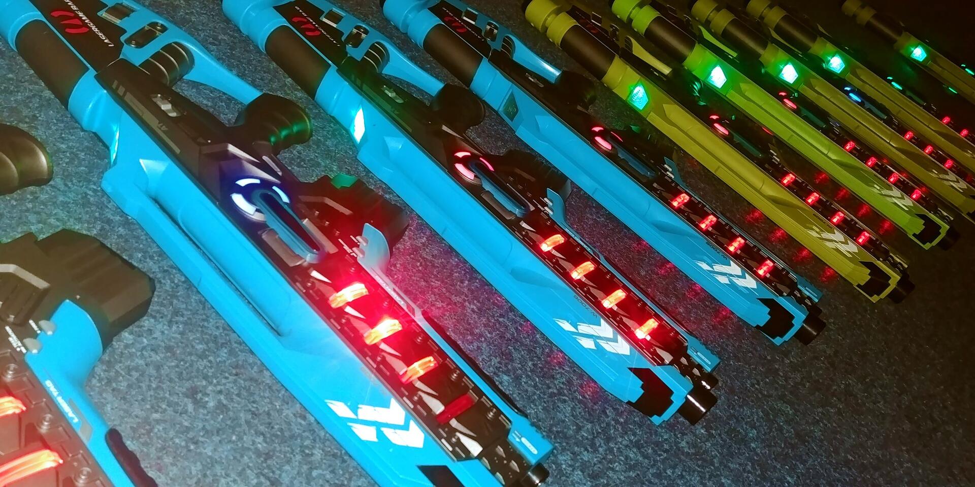 Vesty a zbraně jsou unikátní. Hliníkové zbraně, které nejsou připoutány kabelem k věstě dokáží přesně zasáhnout cíl přes celou arénu, pokud ovšem takové místo najdete. Měkké kožené vesty, které nikde netlačí jsou tak přirozeným oblečením, že ji při hře ani nevnímáte. Jsou opatřeny snímači laseru, led diodami, vibrátory a reproduktory, čím Vám dají zcela zřetelně na vědomí informaci o Vašem zásahu. Nenapasujeme Vás do plastového brnění jehož diplej Vám bude svítit do očí. Veškeré informace o hře počtu Vašich zásahů, počtu nábojů a mnohé další informace jsou umístěny na přehledném barevném informačním displeji, který je umístěn na zbrani.
