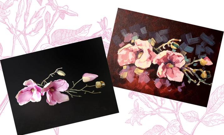 Květy jsou velmi oblíbené výtvarné téma a dají se namalovat mnohými způsoby i technikami. V této lekci se budeme věnovat tintám, tónům a tmavým lomeným tónům.