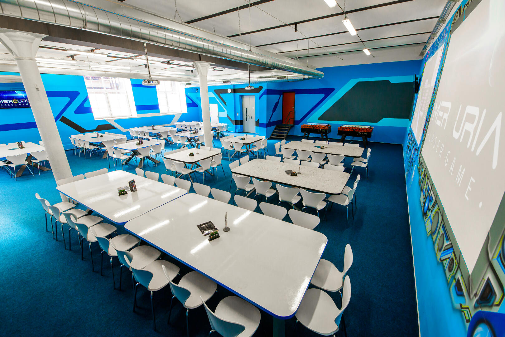 Mercuria laser game Braník Aréna Nový svět je jedinečným spojením obou arén, ve které dosáhneme kapacity 34 nebo na vyžádání až 36 hráčů!
