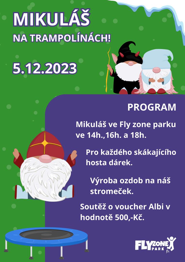 Mikuláš se svou družinou zavítá do Fly Zone Parku vždy ve 14:00, 16:00 a 18:00 hodin. Po celý den u nás bude možnost si vyrobit papírovou ozdobu na stromeček za, kterou můžete vyhrát voucher od Albi v hodnotě 500,-Kč.