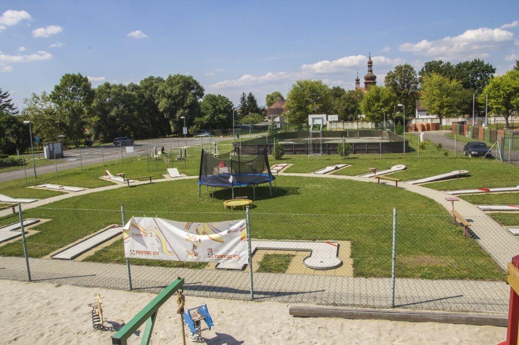Součástí areálu je občerstvení a půjčovna sportovních potřeb.