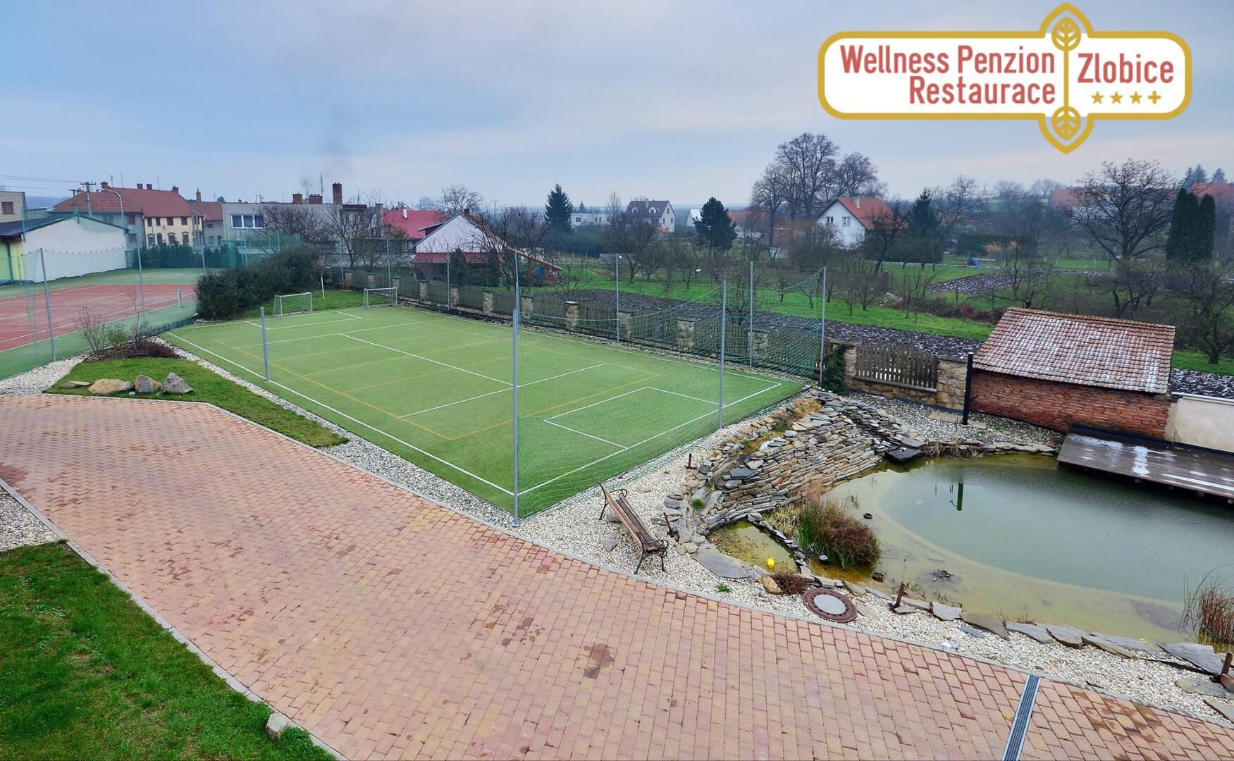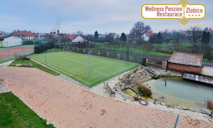 Wellness centrum Zlobice nabízí řadu rekreačních zařízení, včetně tenisového kurtu nebo multifunkčního hřiště...