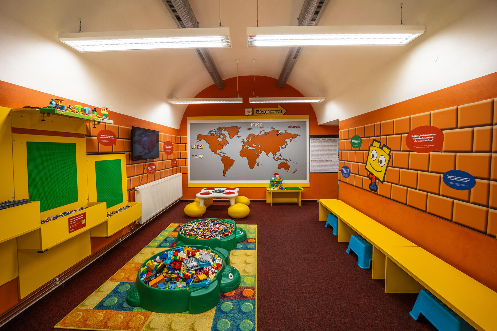 Nedílnou součástí muzea je hrací koutek s obrovskou zásobou kostiček na hraní.