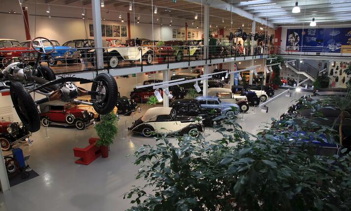 Historické automobily/motocykly - 160 exponátů – 90 automobilů, 30 motocyklů a další exponáty související s historií motorizmu jako stabilní motory, benzinové stojany, motory, atd.