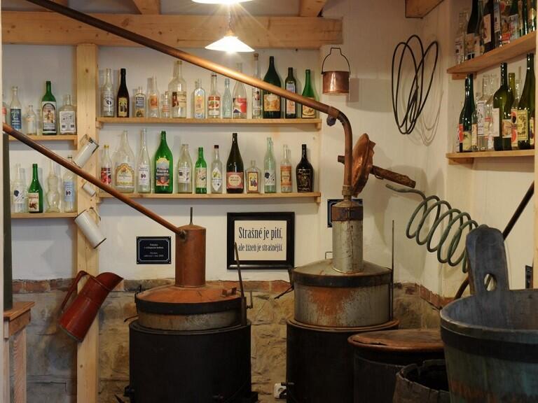 K vidění je na tři desítky kompletních destilačních přístrojů a jejich částí, velké množství nádob, vinět a dokumentů. Textové panely, vydané drobné tisky, publikace, hudební i obrazové snímky pak dokreslují minulost i současnost podomácké výroby ovocných pálenek a jiných destilátů.