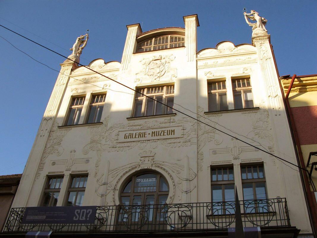 Secesní dům čp. 74 vznikl na místě bývalého přízemního domu holiče Jaroslava Šína. Jako dvoupatrový s podkrovním prostorem ho postavila v letech 1904 – 1905 Okresní hospodářská záložna v Benešově podle projektu místního stavitele Marcela Dusila. Fasádě s bohatými rostlinnými vzory dominuje reliéf znaku Českého království a průčelí vrcholí plastikami dvou světlonošek. V domě mělo kanceláře také okresní zastupitelstvo, které zasedalo v dnešní Šímově síni. Okresní muzeum působilo v přízemí již v letech 1950 – 1962 a vrátilo se s rokem 1992, kdy v prvním patře zpřístupnilo expozici o historii Benešova a okolí. V roce 2002 pak přidalo v druhém patře domu expozici, věnovanou historii benešovské vojenské posádky.