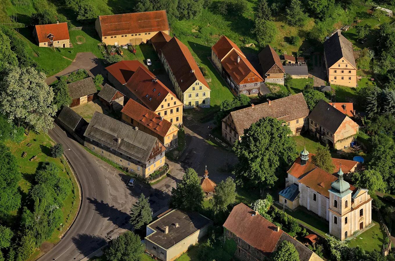 V urbanisticky i krajinářsky jedinečně umístěné obci v kopcovité krajině Českého středohoří se nachází soubor hodnotné zástavby lidové architektury, kde vedle sebe stojí stavby roubené, hrázděné i zděné. Interiérové i exteriérové expozice jsou prezentovány v několika objektech.
