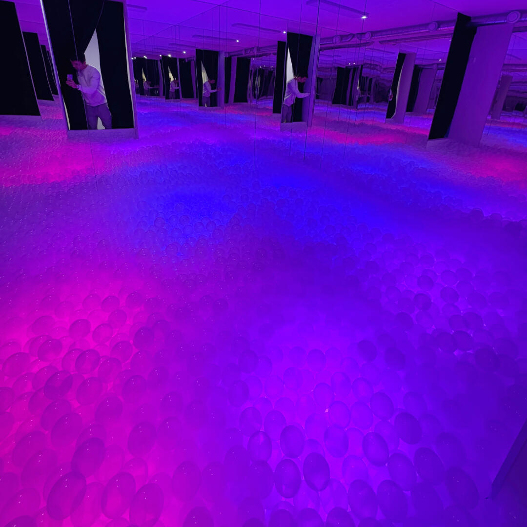 Zrcadlová místnost s tisíci kuliček – interaktivní podlaha, jejíž barvy můžete měnit jediným dotykem. Proměňte celý prostor podle své fantazie a ponořte se do nekonečného moře barev 🌈