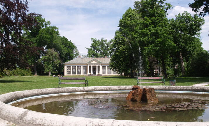 Oranžerie v zámeckém parku Lázních Bělohrad byla postavena v roce 1831. V roce 1959 byla oranžerie přebudována na památník známého bělohradského rodáka Karla Václava Raise, empírový ráz budovy v zámeckém parku byl zachován.
