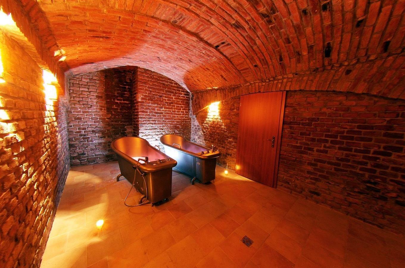 Ve starých cihlových klenbách čekají na naše hosty pivní vany, do kterých se napustí voda o teplotě okolo 35°C a obohatí přísadami, ze kterých se vaří pivo. Poté je host ponořen do vany a ponechán účinkům minerálů a živých kultur v pivě obsažených. Teplá lázeň prohřeje pokožku a uvolní póry kůže, kterými se odstraňují z těla škodlivé látky. Pivní kvasnice dodávají pokožce celou řadu vitamínů B, proteiny a sacharidy a přispívají k celkovému zvláčnění a regeneraci pokožky. Samotná procedura trvá kolem dvaceti minut.