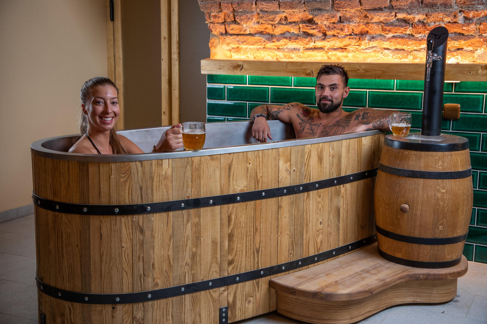 Pivo léčí vnitřně víme my konzumenti dávno. Ale tady vám zkrášlí pivem i zevnějšek! Pivní lázeň je totiž založena na koupeli v přírodních extraktech, ze kterých se vaří pivo – chmel, pivovarské kvasnice a slad. A to je jedinečná kombinace k povzbuzení látkové výměny, vyplavení škodlivých látek z těla a samozřejmě také k uvolnění veškerého napětí, únavy a stresu. Navíc s pípou hned vedle vany, takže se nemusíte strachovat o pitný režim.
