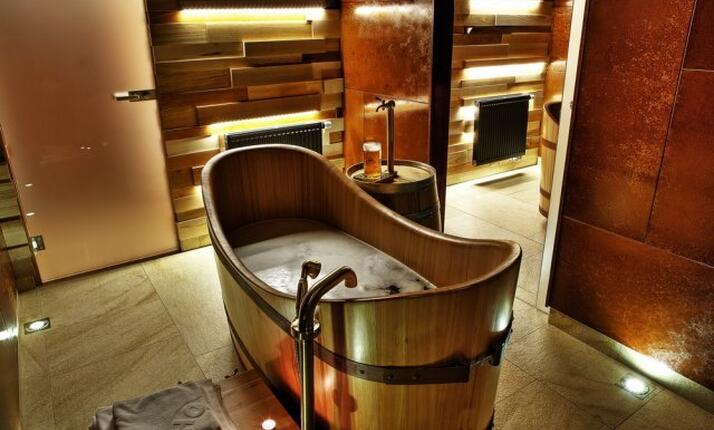 Pivnní vany doplňuje všechny druhy masáží, infrasauna, wellness, suchá sauna a pivní parní lázeň.