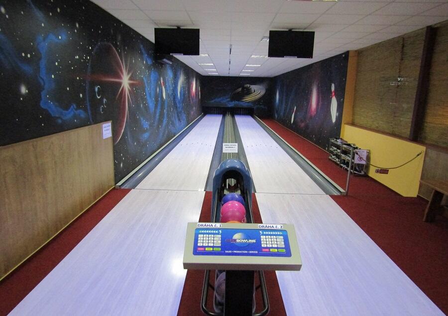 U nás si můžete zahrát na dvou bowlingových dráhách, které mají parametry profi dráhy tj. 18,2 m s dostatečným prostorem pro rozběh.