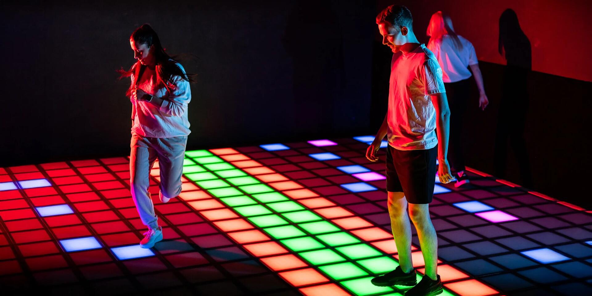 Hraješ na podlaze složené z chytrých LED dlaždic s pokročilou elektronikou. Každý dotek je zaznamenán v reálném čase, výsledky vidíš na obrazovce a průběhem tě provází audiovizuální efekty, které zaručí, že se neztratíš ani jako začátečník. Výběr hry zvládneš jednoduše přes samoobslužný kiosk.