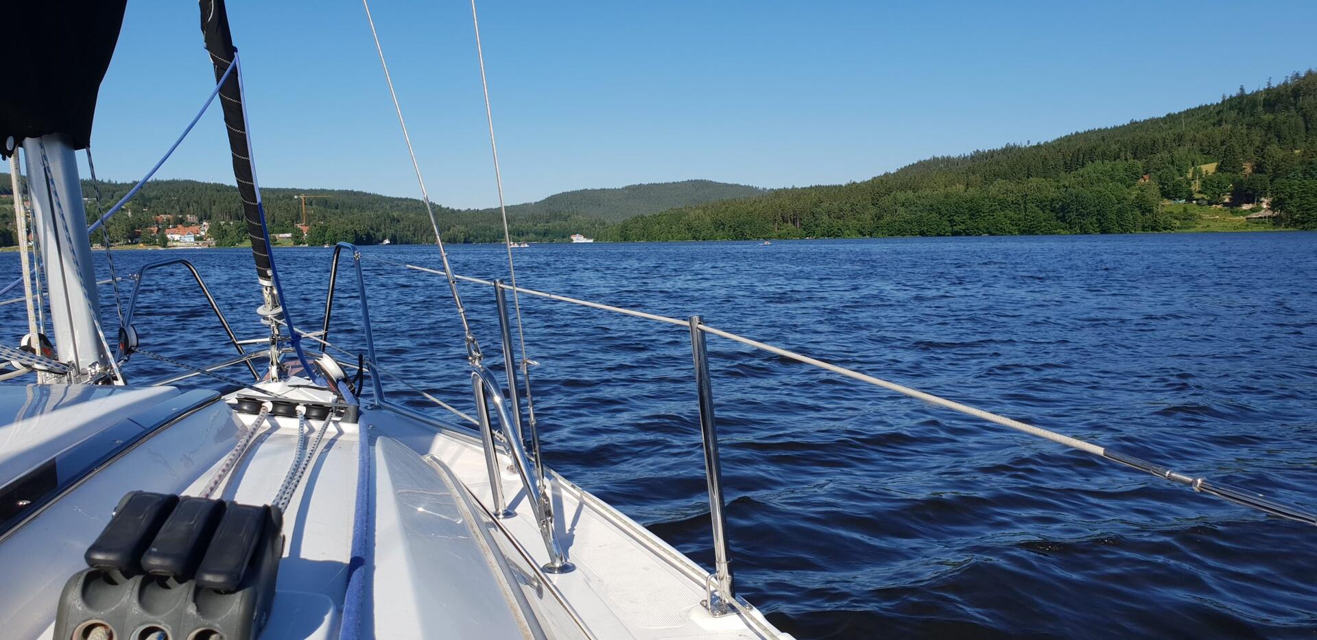 První člun je luxusní loď Bayliner DB 210 ve kterém může cestovat naráz až osm osob včetně kapitána. Člun je osazen motorem 150 PS a ve svém segmentu představuje nejvyšší možné pohodlí. Dá se ležet a opalovat na přídi, nebo sedět na pohodlné sedačce vedle kapitána. Můžete také odpočívat na pohodlné lavici na zádi. Díky výkonu motoru je člun velmi bezpečný a vlny ani vítr mu vůbec nevadí. Vzhledem k té nádheře všude kolem, jistě omluvíte, že si poplujeme v klidu ve výtlačné plavbě, abychom se okolím lipenské přehrady mohli řádně potěšit.