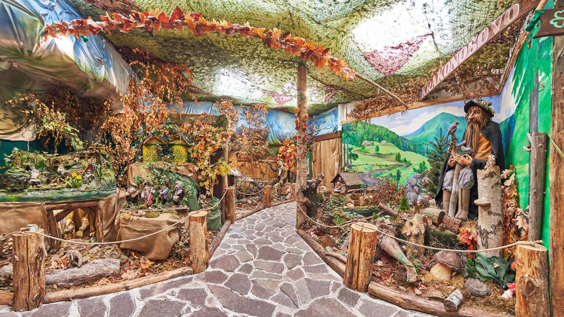 Při vstupu do expozice se ocitnete v jiném světě – ve světě pohádkových bytostí, zpěvu ptáků a klidu krkonošské přírody. Setkáte se zde s mnoha skřítky, vodníky z řeky Úpy, čerty z dolu v Peci pod Sněžkou. Nahlédnete do Čertího mlýna a Zlatodolu na Rýchorách. Poznáte také krkonošskou světnici pana Trautenberga s jeho čeládkou, rytíře Albrechta, trutnovské draka, muzikanty, Věštírnu, Ledovnu a tančící víly.