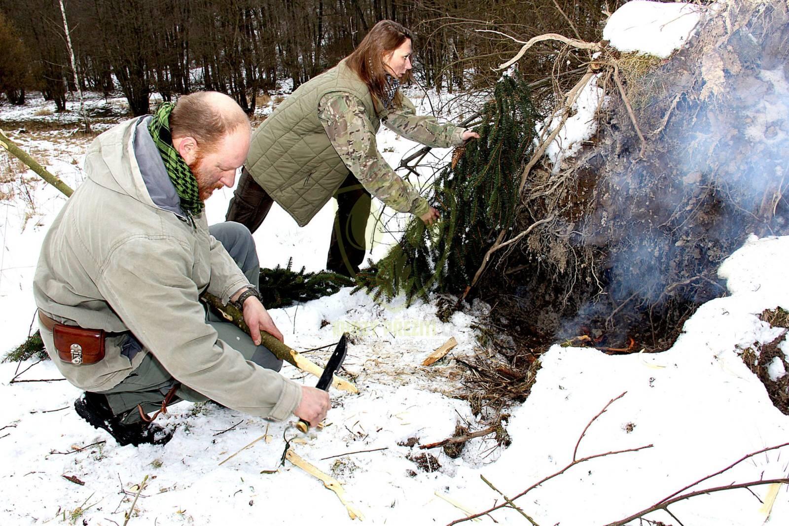 V průběhu kurzu se naučíte a hlavně si prakticky vyzkoušíte, jak se bezpečně a ve zdraví vyspat na sněhu či při nízkých teplotách bez spacího pytle. Postavíte si některé typy zimních nouzových přístřešků a na vlastní kůži pocítíte, jak na vás a vaše tělo působí dlouhodobě chlad. Projdeme si základy psychologie přežití v přírodě a zdravovědy. Řekneme si, jak sestavit cestovní lékárničku a KPZ. I to, jak si vyrobit některé užitečné předměty, kde hledat vodu a jak ji upravit na pitnou. Dále si ukážeme několik nouzových způsobů rozdělání ohně, atd…