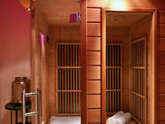 Kapacita naší infrasauny jsou dva lidé. Budete-li tři, ostatní mohou mezitím relaxovat na lehátkách nebo rovnou ve vířivce.