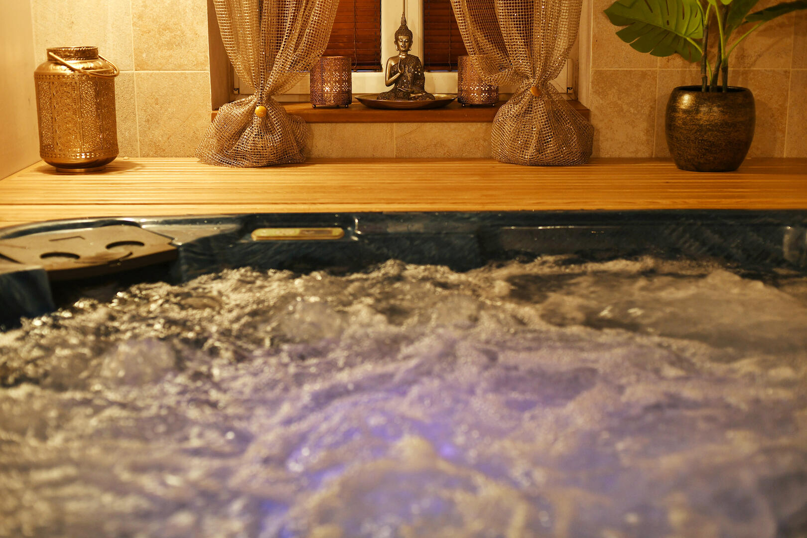 Voda v naší vířivce je vždy křištálově čistá a teplota vody je 37 stupňů (jako teplota těla, což je správná teplota vířivky)