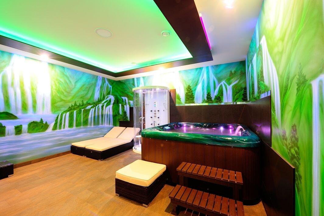 Privátní zóna je situována do světa zeleně a vodopadů, snahou bylo navodit velice příjemnou a uklidňující relaxační atmosféru v privátní vířivce a sauně. Tematická malba celé zóny, je v provedení 3D, podsvícena UV světlem a zaručuje nevšední zážitek.