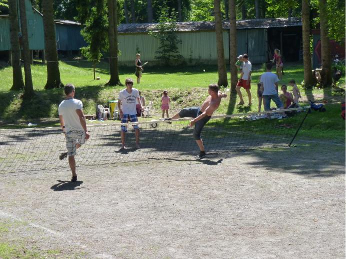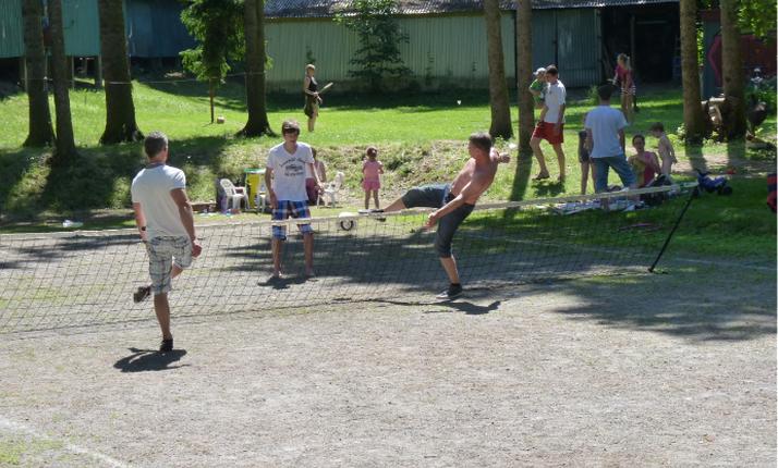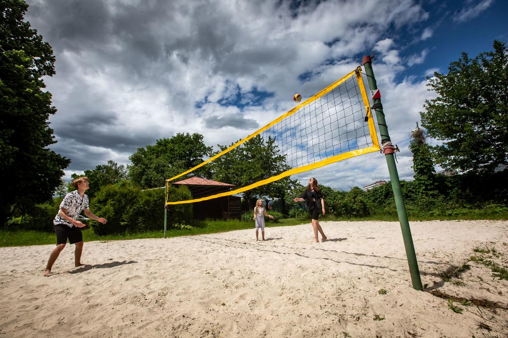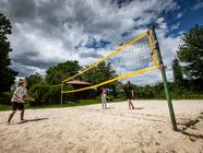 V rámci přírodního areálu v zátoce řeky Orlice Vám nabízíme k pronájmu hřiště na volejbal/nohejbal a hřiště na beach volejbal.