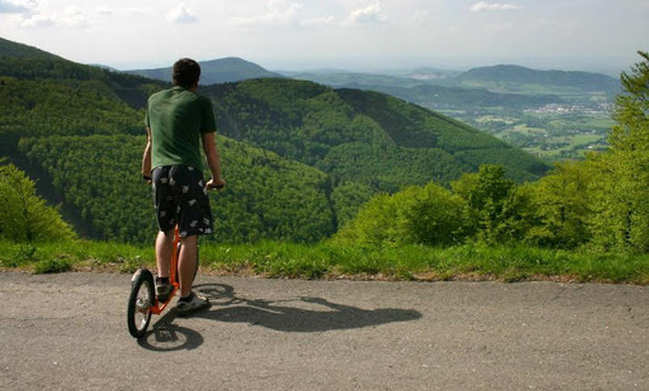 Koloběžky Pustevny sjezd - možný výběr ze tří tras: