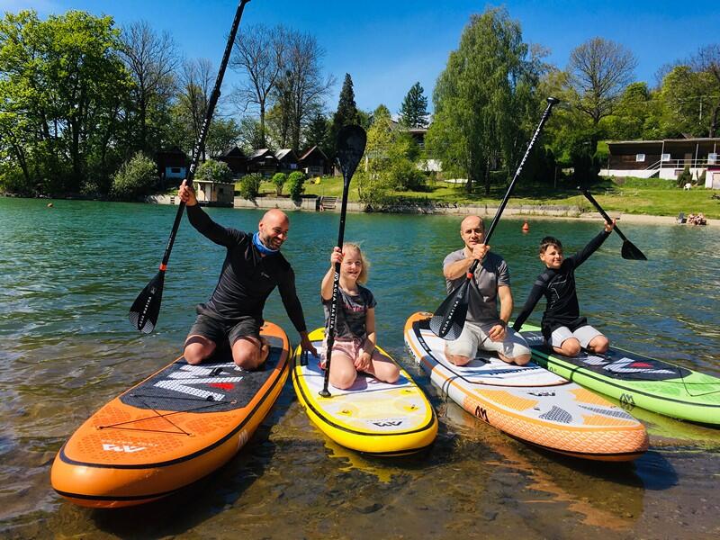 PADDLEBOARD ZVLÁDNE KAŽDÝ! Děti, mladí, starší, fyzicky zdatní i ti, kteří nejraději tráví čas u počítače. Všichni si naše paddleboardy půjčují jako parťáka k vodě. Paddleboard si můžete zapůjčit na jeden nebo více dní. V letních měsících si můžete zapůjčit paddleboardy hodinově v R-Zátoce u Žermanické přehrady.