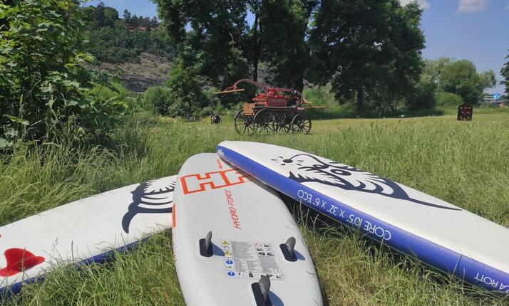Užijte si prima jízdu na vodě s nafukovacím paddleboardem. Půjčujeme paddleboardy HYDRO FORCE - další značka největšího světového výrobce sportovního nafukovacího zboží Bestway. Velikost plováku: délka 305 cm, šířka 84 cm a výška 12 cm. Objem je 256 litrů. Váha 7,3 kg. Vhodný na jízdy ve stojatých i tekoucích vodách. S nosností okolo 130 kg unese i dva dospělé.