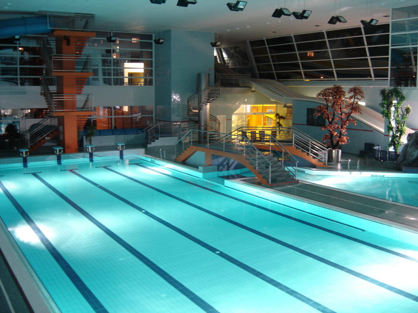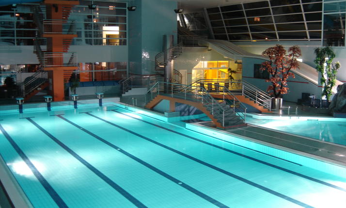 Plavecký bazén o délce 25 m se nachází v hlavní bazénové hale, obsahuje 5 drah, hloubka 1,2 - 1,6 m, teplota vody 28°C, přístupný i pro imobilní návštěvníky.