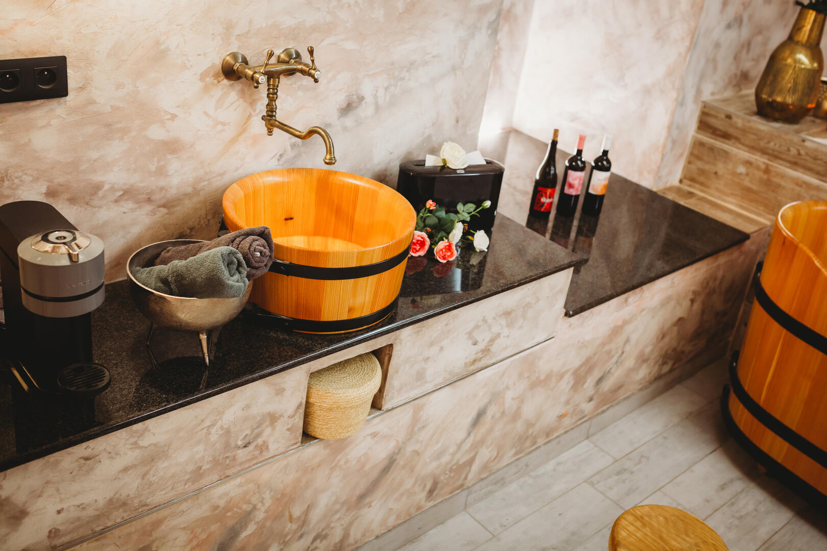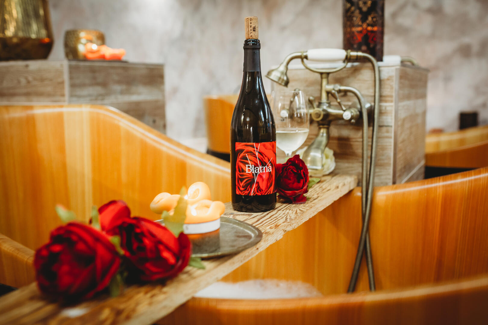 Vy také máte právo na rozmazlování! Zažijte sílu lásky a pohody na vlastní kůži. Kouzelná atmosféra soukromého wellness se nachází v krásně obnovených sklepech domu nedaleko zámku Blatná. Můžete se zde koupat v dřevěných vanách a užívat si různé typy koupelí. Můžete se zde odreagovat, uvolnit se za doprovodu magické hudby a těšit se z uklidňující atmosféry dotvořené světlem voňavých svíček. Dopřejte si regeneraci, kterou si zasloužíte! Tyto prostory jsou ideálně upraveny pro romantické okamžiky ve dvojici. Wellness je vhodné pro ty, co si rádi užijí jeden druhého v romantické atmosféře, aniž by Vás někdo rušil.