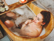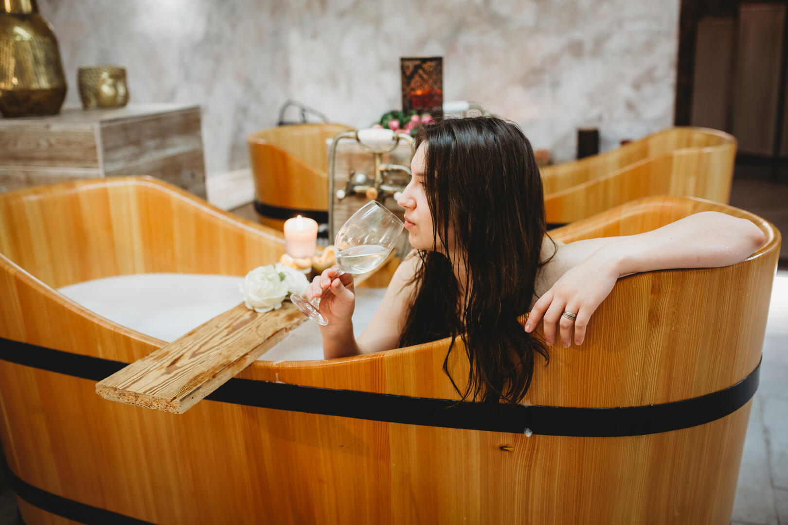 – vyzkoušejte omlazující účinky královské koupele z růžových okvětí divokých růží. Jejich aroma je již po staletí jedním z nejpopulárnějších, proto se růže říká královna květin. Nechte se ovlivnit aromaterapeutickými vonnými silicemi, které vás uvedou do relaxační nálady, dodají vám novou energii a pomohou zapomenout na celodenní stres. A pokud si budete chtít odnést památku na krásné relaxační chvíle, můžete si na místě zakoupit kosmetiku z této královny květin.