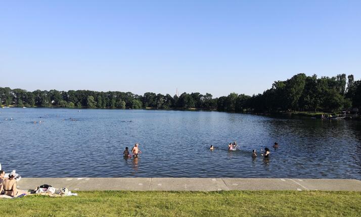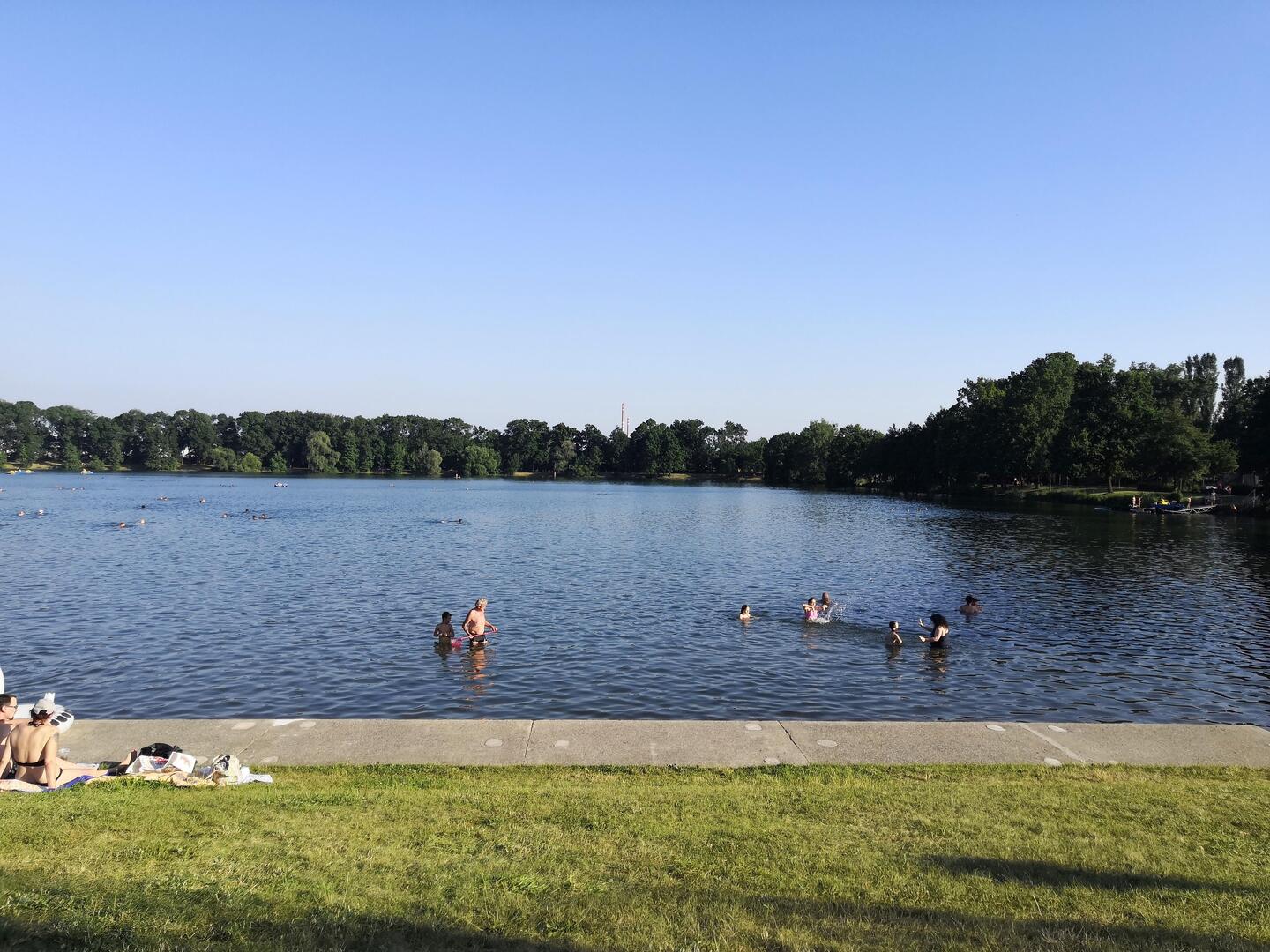 Součástí areálu je rozlehlá a dobře udržovaná travnatá pláž s upravenými vstupy do vody. Dále v tomto areálu jsou 2 dětská brouzdaliště o rozměrech 12 x 10 m, hloubce 0,4 m. Z těchto brouzdališť jsou přístupny skluzavky pro menší děti. Pro větší