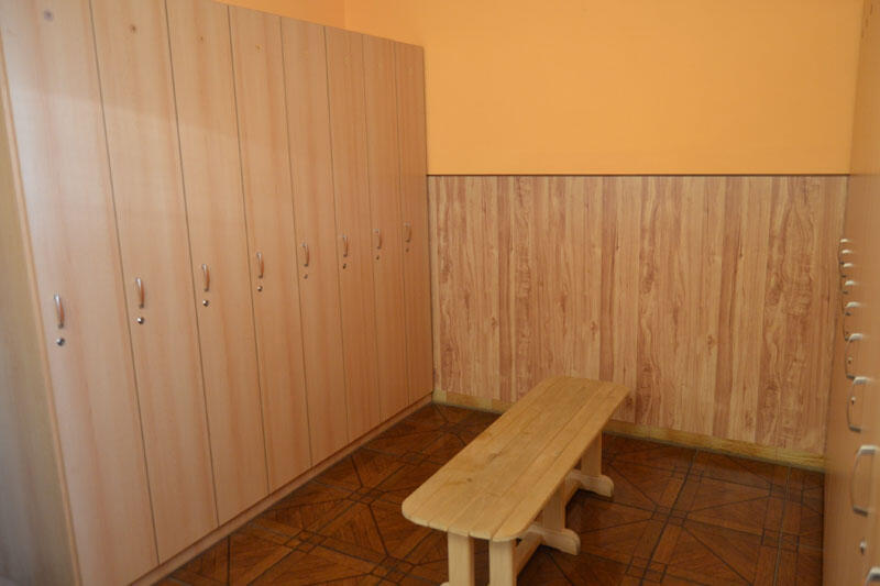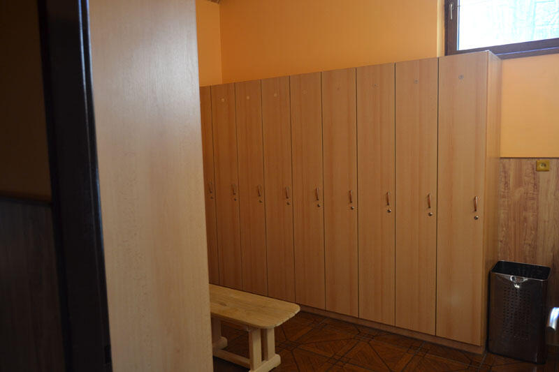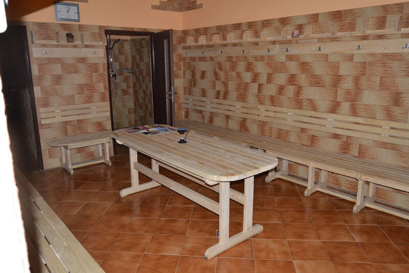 Maximální kapacita 15 osob, obložená dřevem z topolu.