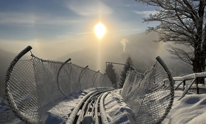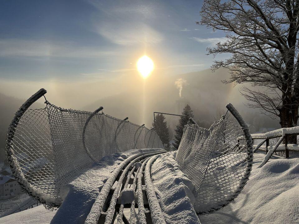 Bobová dráha o celkové délce 900 metrů. Na horní stanici Vás dopraví vlek a dolů jedete sami 700 metrů dlouhým sjezdem. V některých místech budete až 8 metrů nad zemí.