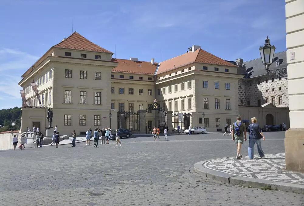 Klasicistní trojkřídlý palác s čestným dvorem postavil začátkem 19. století František Pawitsche (Pávíček)k pro pražského arcibiskupa Viléma Florentina knížete Salma na místě menších domů hradních úředníků; od roku 1811 náležel Schwarzenberkům, kteří jej spojili se sousedním Schwarzenberským palácem. Pamětní deska zde připomíná sochaře J. Landu, který v domě žil. Palác měl mít původně funkci luxusního bytového domu, ale brzy po své dostavbě se jeho vlastníky stali zámožní Schwarzenberkové. Dnes nese tato stavba název po svém prvním majiteli Salmovský palác, ale říká se jí také Malý Schwarzenberský palác díky sousedství a historické vazbě na vedlejší známější stavbu.