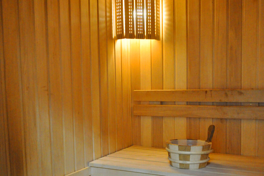 V našem fitcentru můžete navštívit suchou finskou saunu, která je zhotovena ze skandinávského smrku a lavice jsou ze dřeva Abychy, které se nerozpaluje.