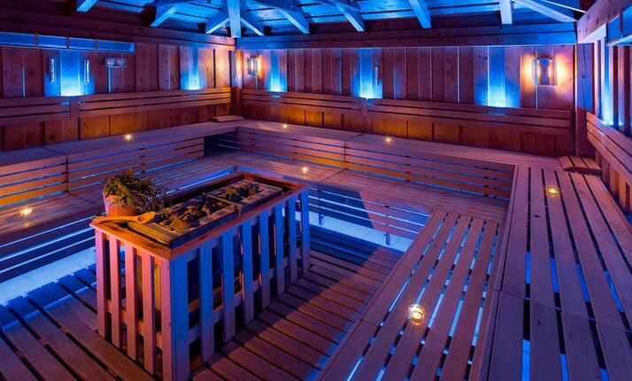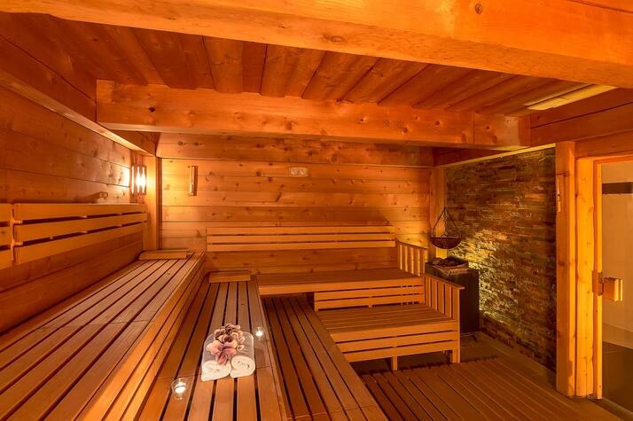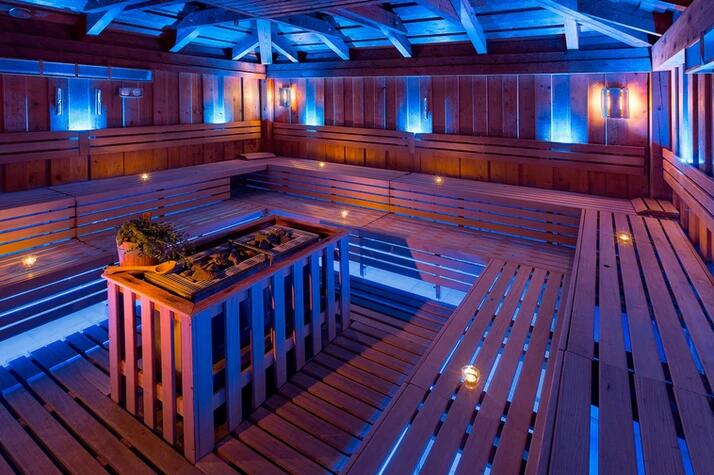 Pro milovníky vysokých teplot a klasického saunování je připravena finská sauna s teplotou 95°C a parní náraz s teplotou 85°C. V něm probíhá automatický polev kamen vodou s vonnou esencí. Po jejím odpaření se rozeběhne podstřešní větrák, který nažene vůni a teplotu od stropu místnosti až k vám.