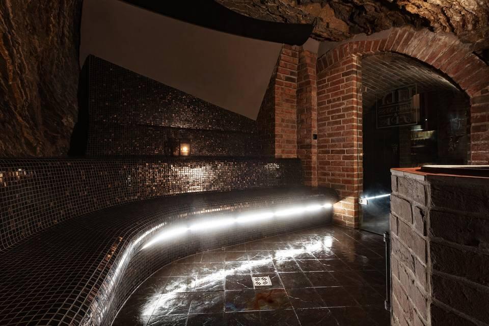Za zmínku stojí unikátní parní lázeň v jeskyni z 15. století, tzv. „Stone Bath“, nebo také luxusně zařízená finská sauna, které dominuje odpočinková zóna.