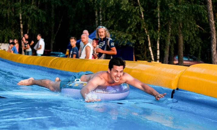 Zveme všechny malé i velké dobrodruhy na nezapomenutelnou letní jízdu! Dopřejte si nevšední zážitek na naší 60 metrů dlouhé nafukovací vodní skluzavce Slide, která vás rozhodně nezklame... Čeká na vás spousta radovánek, smíchu a osvěžení v teplých letních dnech.