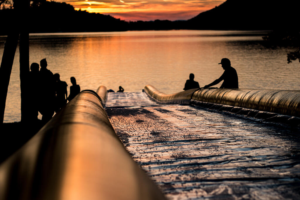 Skluzavka je 60 metrů dlouhá nafukovací, zakončená bazénem, ve které cirkuluje voda. Používají vodu z přírody, neupravovanou chemicky, kterou následně do přírody vracíme. Hloubka v dojezdovém bazénu je cca 60 cm. Lze na skluzavce jezdit po nafukovacích hračkách - kruzích, rybách, pelikánech. Není možné na skluzavce jezdit na tvrdých předmětech, které by mohli povrch skluzavky poničit.