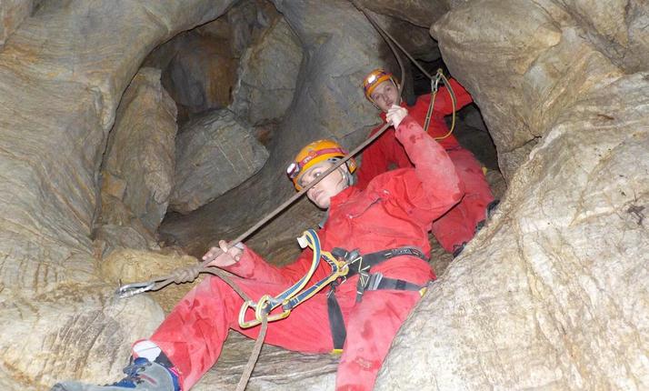 Vydáte se až 40 metrů hluboko do jeskynní kaskády plné průlezů, plazivek, komínů, propastí, lanových žebříků a traverzů. Zdoláte místa s názvy jako Utržené splachovadlo, Porodní bolesti, Opičárna nebo třeba Schody do šnečí ulity – a věřte, že své jméno si každá pasáž opravdu zaslouží.