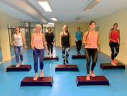 Během lekce vystupujeme na stupínek – step a díky tomu je umocněn trénink a formování nohou.