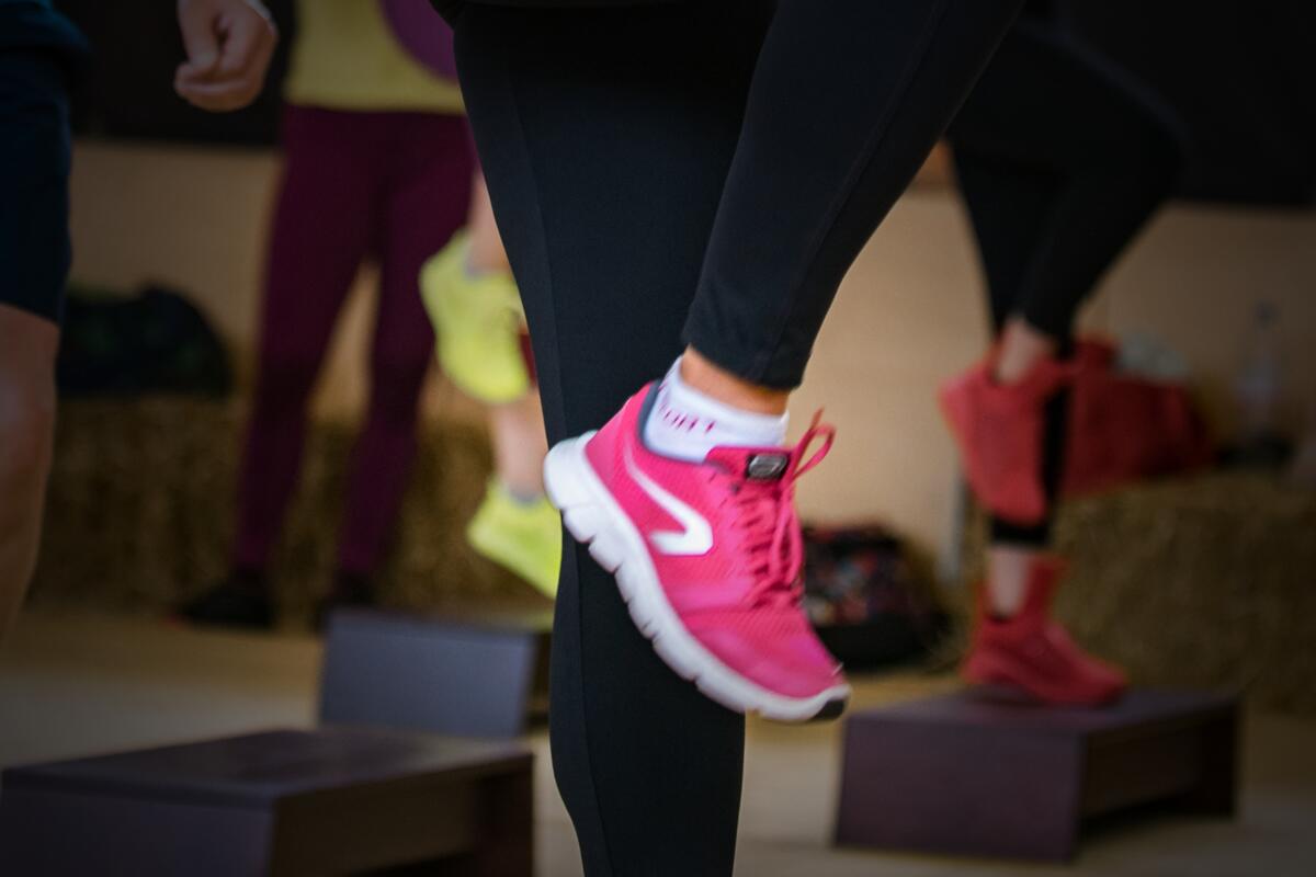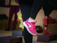 Aerobní trénink vytrvalostní kapacity s hudbou a především trénink svalstva dolních končetin a hýždí.