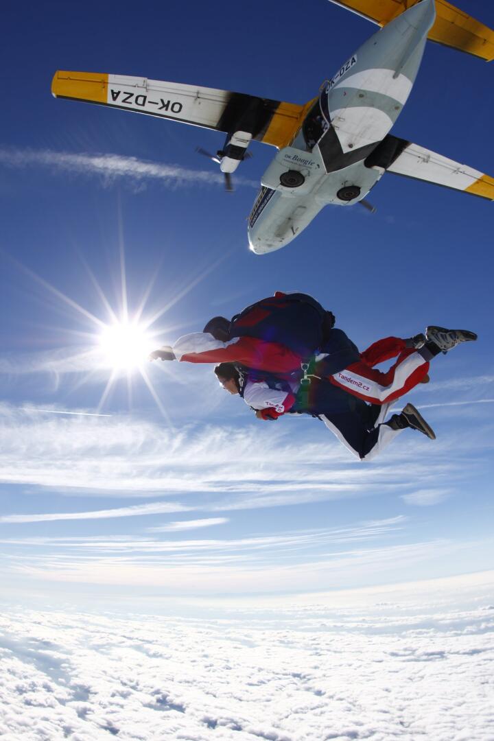 Tandemový seskok v rukou zkušených profesionálů je zážitek dostupný široké veřejnosti.