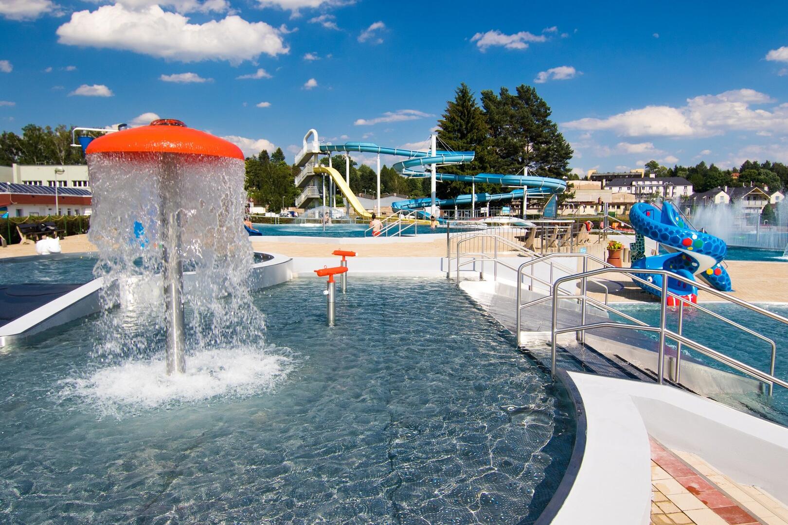 Dětský bazén - skluzavky, fontánky, vodní děla, kyblíkový strom, vodní hřib, vodní ježek