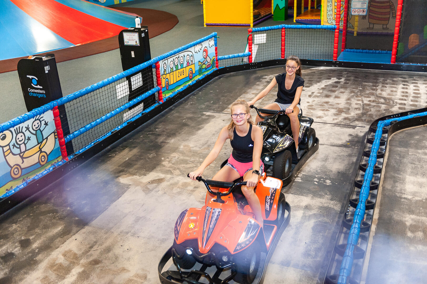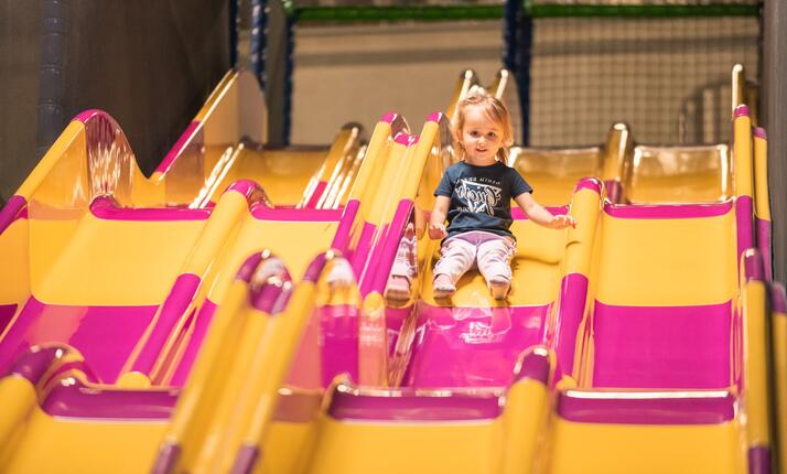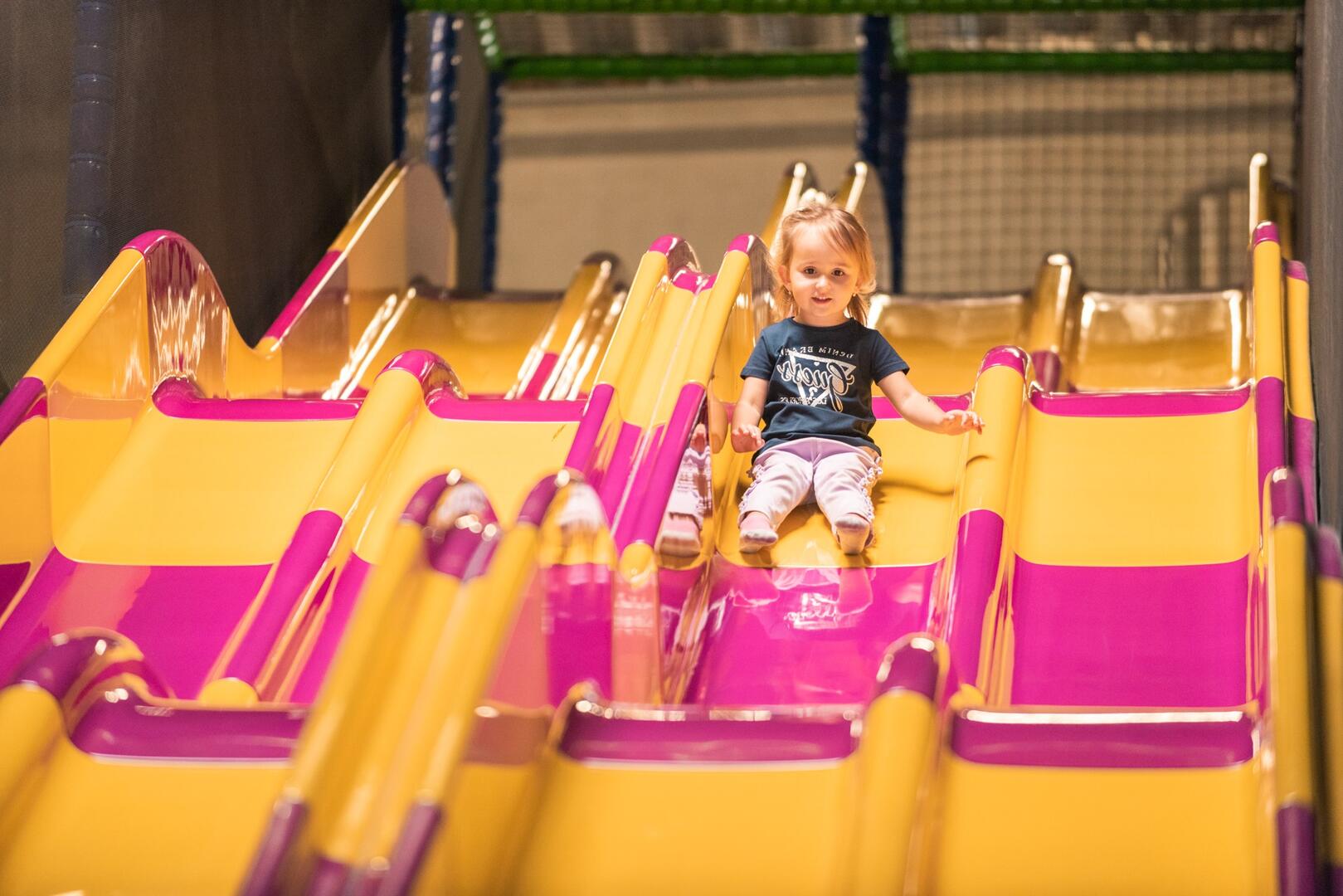Hraní, řádění, lezení, skákání, křik – jednoduše zábava! Děti se mohou vyřádit na mega-klouzačce, tobogánech, trampolínách, horolezecké stěně, šplhací sopce, v adrenalinovém parku, fun shoot aréně, v pavoučí věži či na obrovském nafukovacím krokodýlovi. Pro nejmenší návštěvníky je k dispozici koutek pro batolata. Překvapení čeká i na malé řidiče, kteří mají možnost ukázat svou šikovnost na motokárách.