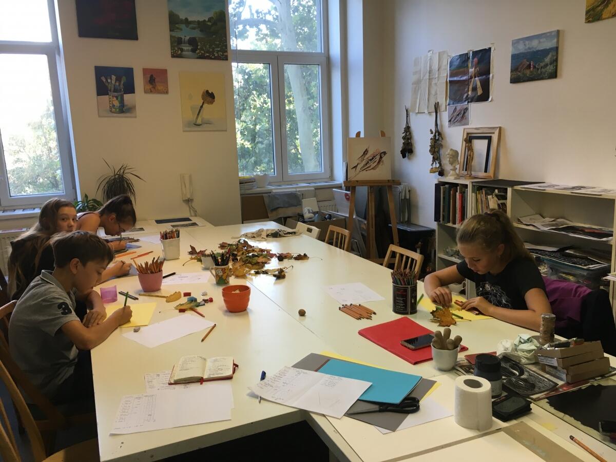 Během kurzu se budeme věnovat tvorbě tužkou, uhlem, akrylem, pastelem, akvarelem, temperou atd. .. ale i netypickými technikami jako je práce se šablonou, frotáž, koláž a kombinovaná technika. Budeme se učit kompozici, využití barevnosti, vnímat světlo a stín a prostor. Budeme spolupracovat i na společných obrazech, tématu.