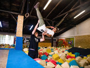 Velká trampolína do molitanové jámy, kde si můžeš nacvičit ty nejobtížnější prvky.